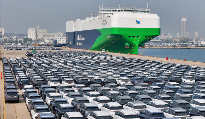 ![]() Vehicles wait to be loaded for export at Yantai Port in Shandong Province on April 14 (XINHUA)