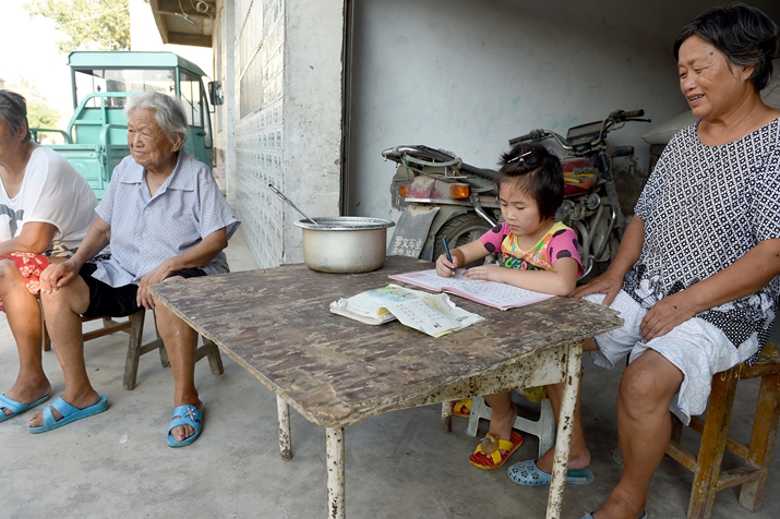 Gu Xinru, a 9-year-old left-behind girl, does her homework with her grandmother (right) at Maotang Village in Huaiyuan County, Anhui Province, on August 4, 2015 (XINHUA) Besides the responsibility of the parents, the new guideline also delineates the role of the government and society in caring for the country's left-behind children. Local governments and village committees must keep themselves well-informed about the situation of left-behind children within their jurisdiction and ensure that they are properly taken care of, the guideline stated. Education authorities and schools also have an obligation to help them get education in a safe environment. Local governments can contract charities and voluntary bodies to provide professional services, and a system of reporting, intervention, assessment and help will be established, the guideline said. Following the guideline, the Ministry of Civil Affairs inaugurated a new office devoted to protecting left-behind children. The office, under the ministry's Department of Social Affairs, plans to assess and improve the management of databases for left-behind children in rural areas, according to a ministry statement. It will also be responsible for establishing an inter-ministerial joint conference system to coordinate work among different government branches and helping to integrate civil affairs resources, including social assistance, welfare, social groups and communities. Even so, many insiders participating in efforts to help those children say that there is still a long way to go. Li Yang, a co-founder of Prop Roots, a public service organization dedicated to helping left-behind children, said that there are few channels for social organizations to take part in the activity due to a lack of government financial support. "For example, we are confident that we have the capability to train more professional teachers for rural schools, but the reality is that a lack in funding has led to a brain drain of our original talents," Li said. He suggested that local governments should fund services of social organizations such as his to solve the predicament. Long suggested that the government should encourage local enterprises to participate in the action. "Local governments can use tax-reduction policies to encourage those enterprises to provide childcare services," he said. Tong Xiaojun, Director of the Children's Research Institute at China Youth University of Political Studies, said that China should train more social workers to help protect and educate left-behind children. "Compared to a developed country, China's social worker force is still in its infancy. In the future, the government should put more efforts to train more professional social workers, especially those in rural areas, to help solve problems including those posed by left-behind children," Tong said.