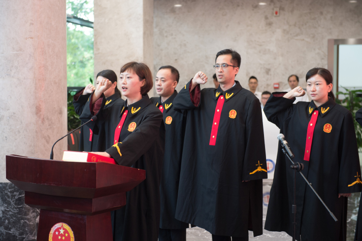 Judges of a court in Hangzhou, Zhejiang Province, swear an oath to the Constitution on August 18, 2017 (XINHUA)