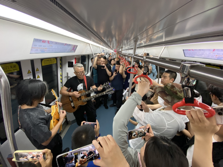 ![]() Rock band Music Within Nature performs on Subway Line 1 in Shijiazhuang, Hebei Province, on July 16 (VCG)