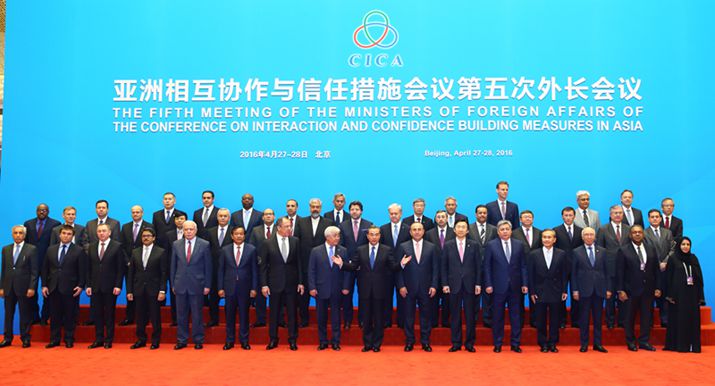 Foreign ministers pose for a group photo ahead of the fifth ministerial meeting of the CICA in Beijing on April 28 (XINHUA) When the fifth meeting of the ministers of foreign affairs of the Conference on Interaction and Confidence Building Measures in Asia (CICA) opened in Beijing on April 28, Chinese President Xi Jinping called for continuous efforts to build a common, comprehensive and sustainable Asian security architecture on the basis of cooperation. In his speech at the opening ceremony, Xi said peace and stability are the common aspirations of all Asian people. While economic growth and regional integration have seen Asia's place in the world rising, still, there are both conventional and unconventional challenges to Asia's security. They include regional conflicts and terrorism. Against such a backdrop, Asian countries need to work side by side to strengthen regional security. He also stated China's stance on the Korean Peninsula nuclear issue. Reiterating China's adherence to the UN Security Council resolution, he said China was committed to the Korean Peninsula's denuclearization. "As a close neighbor, we will never allow war or chaos on the peninsula, as this serves nobody's interests," Xi said. He urged all parties involved to exercise restraint, avoid provocation, and find a way back to the dialogue and negotiating table at an early date. With regard to the tensions in the South China Sea, the president said China is dedicated to peace and stability in the region. While firmly safeguarding its sovereignty, rights and interests, China is willing to peacefully resolve the disputes through friendly consultations and dialogue with the countries directly involved. China will work with Southeast Asian nations to make the South China Sea a region of peace, friendship and cooperation, Xi added. What is CICA? The CICA was established in 1992 as a forum for dialogue, consultation and promotion of confidence-building measures. It now has 26 member states, seven observer states and four observer international organizations. At the Fourth CICA Summit in Shanghai in 2014, China assumed chairmanship of the institution for the first time. The tenure was to expire this year. At the fifth CICA foreign ministers' meeting, member states spoke highly of China's efforts and agreed to extend China's chairmanship till 2018. The fifth CICA foreign ministers' meeting centered on promoting security through dialogue. About 40 delegations from CICA member states, observer states and international organizations attended the two-day meeting. Currently, Asia faces many security challenges: terrorism, poverty, territorial disputes, nuclear proliferation and other unconventional threats. The CICA is a multilateral dialogue platform for all Asian countries to discuss security-related issues. Can it serve as an intergovernmental organization to arbitrate in regional affairs? "The CICA is not a place to resolve concrete issues. It seeks to find a common understanding of security and tries to build an architecture that can be comprehended and accepted by all countries in the region," Gui Congyou, Director General of the Department of European-Central Asian Affairs under China's Foreign Ministry, said ahead of the meeting. "There are many complicated problems and deep-rooted conflicts in Asia. These issues are [all] different. How to resolve them? First, Asian countries should find a common ground," Gui said. The official pointed out that at the CICA Summit in Shanghai two years ago, Xi had proposed that the CICA become "a security dialogue and cooperation platform for all of Asia, from which countries can explore the possibility of creating a regional security framework."