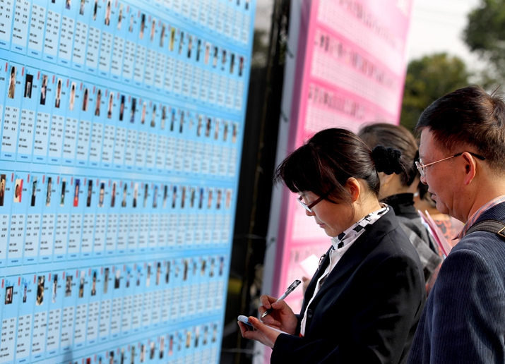 Every morning 54-year-old Qi Guilan goes to a pavilion in the Purple Bamboo Park in west Beijing's Haidian District with her daughter's profile written on palm-sized paper. She pastes the paper on a small wood board and sits in the pavilion with the sign beside her. Normally, there are about 10 people of Qi's age who gather at the pavilion with profiles of their children. On weekends, there are more. They form part of a growing phenomenon--parents hoping to find a spouse for their unmarried children. Qi's daughter, 30, just returned to China from the United States with a master's degree and works for a state-owned company in Beijing. "I came across this pavilion while doing morning exercises in the park," Qi told Beijing Review . "It is a good find as I have long been worried about the marriage of my daughter: it is a priority for my family." After one week, Qi made friends with all the parents here and they shared their experiences of seeking for spouses for their single children. "I learned through chatting with these parents that it is difficult for a single woman to find her Mr. Right in Beijing," Qi said. "A mom came here when her daughter is only 24. Compared to her, my daughter is too old, so we must hurry up."