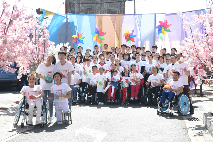 ![]() Participants of a music video to be released on the 29th National Day for Helping the Disabled in May pose for a group photo in Beijing on March 21 (COURTESY PHOTO)