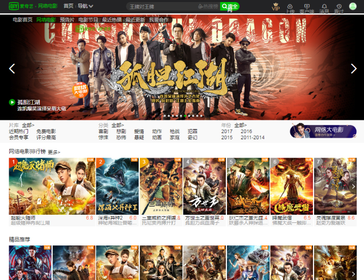 ![]() A screenshot of the Web movie section of iQiyi.com
