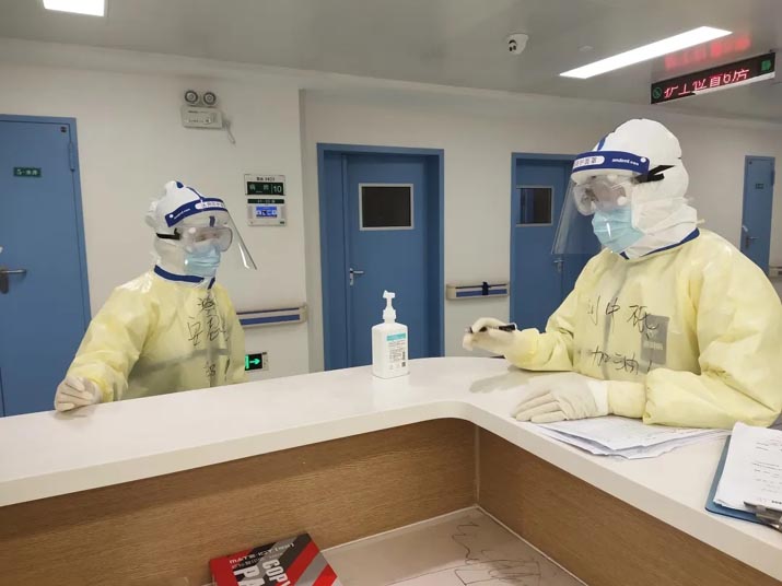 Medical workers receive specialized training in Wuhan The battle begins On the next day, our team visited the newly established ICU at the Tongji Hospital. When we arrived, the team leader and the hospital support staff were still busy making final adjustments to the medical equipment and the information system. Immediately, everyone on the team was busy with their respective tasks: doctors were managing the medical record system, while nurses were busy inspecting medical instruments and checking the drugs. We were all busy carrying out our duties to prepare for the impending battle ahead. It took only 24 hours for the ICU to be fully prepared for incoming patients! Around 10 p.m., the first incoming stream of patients started arriving at the ICU, signaling the beginning of our battle. I recall entering the changing room prior to their arrival and having to wear protective clothing, gloves, shoe covers, goggles and face shields. Everyone on our team made sure to check up on each other for any misplacement or gaps in our safety equipment. Once having put on the entire outfit, immediate discomfort started to arise from every part of my body: the sealed glasses were placed tightly around my eyes, creating impaired vision due to the foggy lenses; the tightly fit goggles exerted unbearable pain and pressure on the bridge of my nose; my hands were tightly bound by five layers of gloves, making it difficult to even extend or flex my wrists; and it was hard to breathe through normally when wearing the airtight masks. It became evident to us all that the following days at the hospital would be challenging. In order to enter the contaminated zone, we had to go through four buffer zones and five protective doors. For safety, the team members made sure we entered the ward in separate groups at once. The first door, the second, the third, the fourth, and the fifth. Tension was building up with every door that was opened in front of us. When the last door was closed behind us, I stood for a few seconds attempting to breathe calmly, and meticulously scanned the scene in front of me, looking for patients that were in an urgent need of treatment. More and more patients started to cram up outside of our unit as our shift progressed. Patients who were diagnosed and have already registered were directed to different wards according to the severity of their illness. Doctors and nurses cooperated with each other, making arrangement orders and collecting medical records. We ensured that symptomatic treatment was given on time to each patient and every person had their needs met when requested. The first group of patients that arrived made a lasting impression on me. They were all in critical condition due to their pre-existing chronic illnesses and many of them were elderly patients with severe damage to their respiratory and circulatory systems. When consulting their symptoms, many of them mumbled. Since most of them spoke in a dialect, communication was difficult at first. I remembered clearly during training that medical professionals were advised to maintain a certain distance from the patients, but during consultations, the doctor-patient seating distance, patients' dialect and mumbled responses combined made it difficult for me to make sense of what they said. I had to ask several questions over and over again, at times even closing up to the patients to listen. The entire routine eventually proved to be highly emotionally draining, and it was devastating to hear similar accounts again and again of how patients were tortured by the novel coronavirus. Four hours passed quickly, and with the blink of an eye my shift had come to an end. As I was getting off my shift, it dawned on me that I had completely forgotten about the discomfort I initially felt when I first put on my protective gear. After I took off my gear, I noticed that my inner layers were all wet, and the wetness brought touches of coldness to my skin when exposed to the fresh air. When the foggy glasses were finally taken off, the area around my eyes swelled up immensely, and my nose bridge and cheeks were left with deep indentations on my skin. Stinging pain was felt all over, especially on the areas where the protective gear was tightly bound on my body.