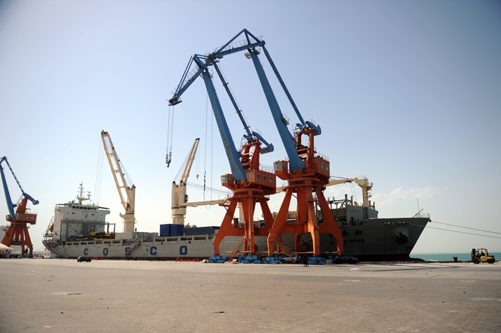In May 2015, a cargo ship berths at the quay of the Gwadar Port, the southern starting point of the China-Pakistan Economic Corridor (XINHUA)