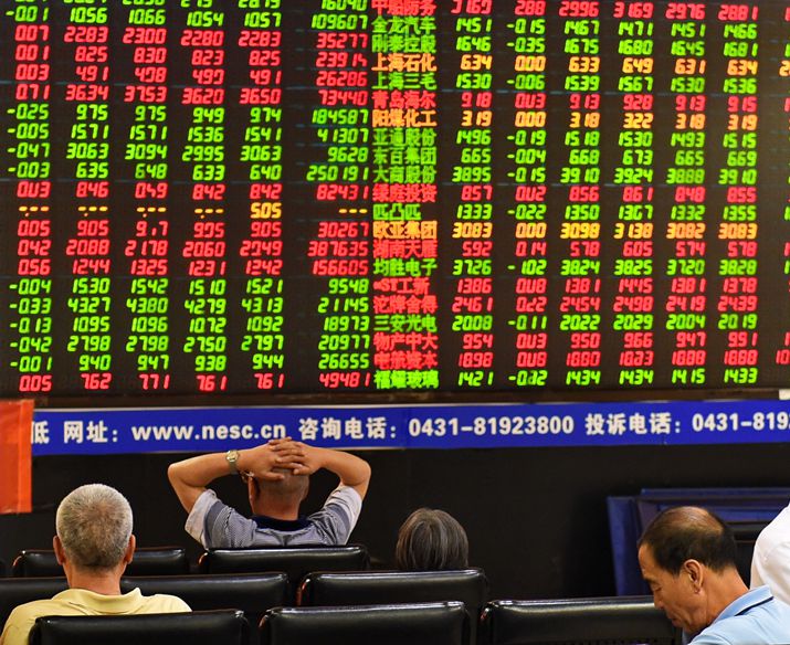 Stock traders observe the electronic screen at a securities firm in Changchun, capital of northeast China's Jilin Province, on July 5 (XINHUA)