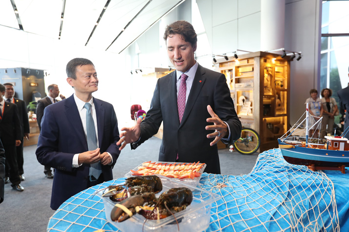 Canadian Prime Minister Justin Trudeau, accompanied by Alibaba's Chairman Jack Ma, visits Alibaba's Xixi Park in Hangzhou to attend the opening ceremony of Tmall's Canadian Pavilion on September 3 (XINHUA)