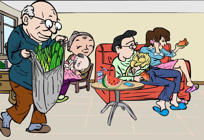 Online survey platform Wenjuan.com and the Social Survey Center of China Youth Daily recently conducted a joint survey of families where 77.3 percent of the respondents said they know of adults who live with their elderly parents and depend on the latter for daily expenses even though they have a decent income. Over 63 percent of those surveyed said adults who live off their parents pretending to keep them company are unfilial, instead of practicing filial piety as they claim. Such people are also known as NEETs, acronym for people who are not in education, employment or training, a term coined in the UK. Some elderly people do need to have their children live with them, since they know their health and habits better than hired nurses, who are also expensive. On the other hand, some parents, even if they do not need their adult children to live with them for help, think they should provide financial or any other support, since this is how a typical Chinese family runs. But now, some people are saying this trend should not be encouraged. Adults should learn to be self-sufficient and live independently as well as try to return the love and care their parents gave them when they were young. A blood bond Ran Yu (www.gmw.cn): Outsiders may view this as adults depending on their elderly parents for support, but these people and their parents may not feel the same way. In their eyes, depending on elderly parents is a kind of blood bond. Are these adult children filial or just NEETs? There is no standard answer. Some parents are happy to have their children live with them and are ready to give them financial support. Some may feel compelled to support their adult children. But as long as the elderly parents are willing to support their children, others have no right to censure this trend. When adult children live with their parents, the parents have their company, which is welcome. So it is unfair to condemn this social trend. Actually, what is hateful is when these grown-up children continuously nag their parents for money. Why do we have adult children living off elderly parents in China? This may stem from the unique Chinese culture. A lot of children live with their parents even when they grow up. Families are used to paying adult children's expenses. Financial problems are rarely discussed directly. The parents are usually the ones who pay for everything though the children may not be necessarily dependent on them. Still, this will be seen as adult children living off their parents. Wu Yunqing (voc.com.cn): Families are knit by love, apart from laws and moral standards. Some people express their love by caring for or supporting other family members. To give the best things to their families makes them happy and satisfied. This is how some elderly people think. To live off one's parents sounds mean and those people will seldom admit they depend on their parents for living expenses, pretending they live with parents to give them company. And their parents do not blame them for doing so. The most important thing for a family is harmony, which is based on consensus among family members. In most cases, the consensus is reached after members make compromises. Outsiders may think the model unacceptable, but there is no standard measurement for a harmonious family. As long as family members feel like supporting their adult children and it does not affect others, why not? But this doesn't mean endorsing preying on elderly parents. Adults should not be encouraged to rely on elderly parents for financial support. However, they still do so for various, sometimes complicated, reasons. Qiao Shan (Beijing Youth Daily): Some people, who live away from their aging parents, may feel guilty and want to compensate for their absence by giving money to their parents. However, most elderly people in cities have their pension. What they need more is care and their children's company. Their children could have excellent careers but are not able to help when their parents are ill or miss them. Those who are not so successful, on the other hand, can live with their parents and are able to take care of them and help whenever the latter need it. This is life. Many elderly parents whose NEET adult children live with them are happy to have them. Of course, all parents hope their children can fly high, but when they really do so, some parents feel dejected, especially when they are frail and ill, and need help. Of course, if adult children continuously ask for money and depend on their aging parents for everything, it is wrong. But the key issue is, their parents don't think so. Chinese parents tend to give whatever they have to their children. Even if they are adults and have their own children, their parents still see them as kids. If the kind of support they seek is beyond parents' capability, then it's not encouraged. But if the parents can afford it, are willing to do so and even feel happy to do so, then it's something we should all accept. We are living in an era where many children are living off their parents. Morally speaking, adult children should assume their own responsibilities and return their aging parents' kindness and care. However, in real life, how many adult children can cope with life's stress and work pressure entirely on their own, even if they do not live with their parents? Need for action Li Erjing (Changjiang Daily): A growing number of people argue that since parents want to support their adult children and get to enjoy their company, it's all right for NEETs to live with their aging parents. People remain under the care of their parents even after they become adults. Sometimes parents spend the bulk of their savings on their children's marriage and after the grandchildren are born, take care of the babies voluntarily. For most Chinese parents, it's instinctive to give their best to their children and always take care of them. It is this disposition that makes parents put up with adult kids wh