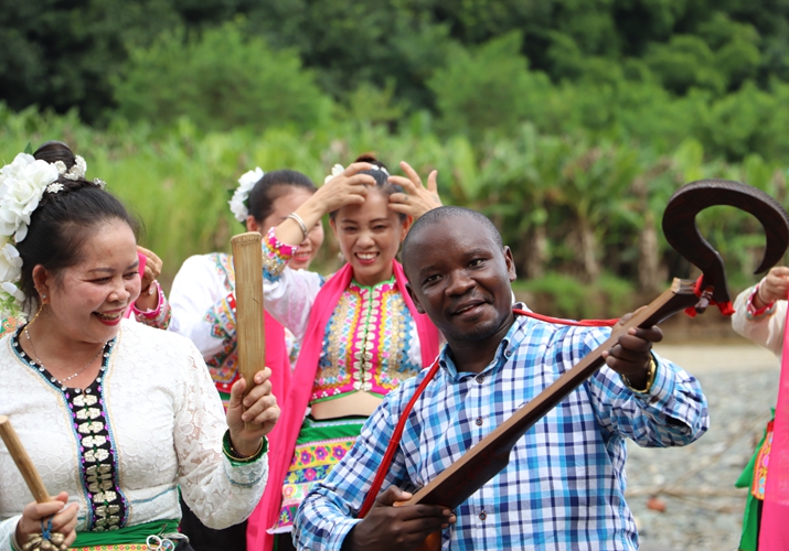 Vincent Mbonihankuye experiences the culture of the Dai ethnic group in Jinping County, Yunnan Province in southwest China, on September 10, 2020(HU FAN)