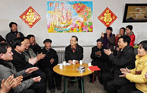 TOWN MEETING: Chinese Premier Wen Jiabao (center) visits residents at a village in Chengde City, Hebei Province, to seek their opinions on the government work report he will deliver at the annual National People's Congress in March (WANG JINGWEN)