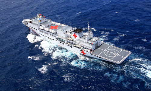 Chinese navy hospital ship Peace Ark sails in the Indian Ocean September 13. The ship arrived in the Gulf of Aden on September 15 to provide medical service for the Chinese escort fleet, as its first overseas medical mission (ZHA CHUNMING) | |