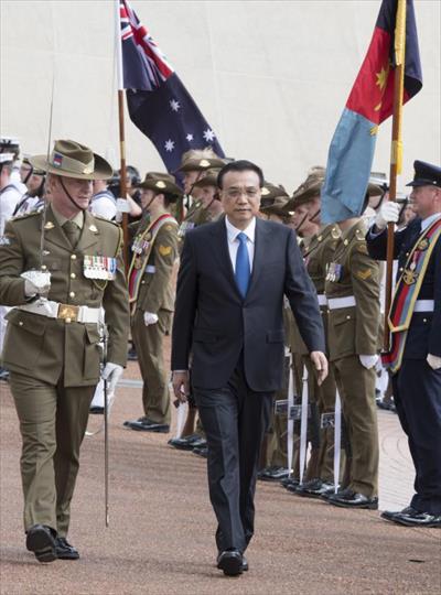 Chinese Premier Li Keqiang attends a welcome ceremony held by Australian Prime Minister Malcolm Turnbull in Canberra on March 23 (XINHUA)