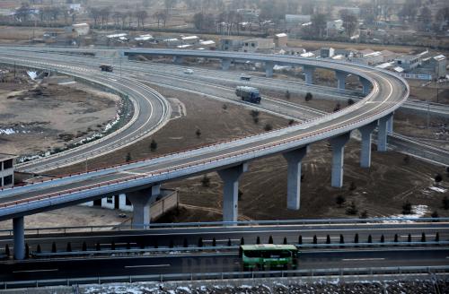 THE FAST LANE: Traffic flows smoothly along a new overpass in Dingxi City, Gansu Province. The northwest province has made significant progress in improving its infrastructure (HAN CHUANHAO) |