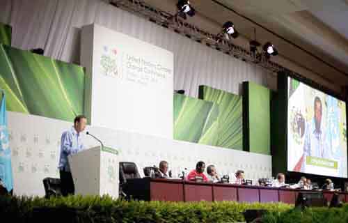 TIME FOR ACTION: UN Secretary General Ban Ki-moon delivers a speech on December 7 at the high-level segment of the Cancun climate conference (XINHUA) | "The Chinese delegation attended the conference with sincerity and expectation," said the NDRC's Xie. "We hope the conference can reach achievements on the basis of the UN Framework Convention on Climate Change (UNFCCC), the Kyoto Protocol, the Bali Road Map and the Copenhagen Accord."