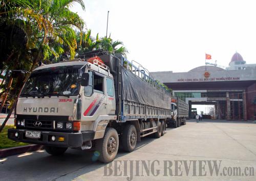 TRADING ACROSS THE BORDER: A loaded truck arrives at the Dongxing land port in Guangxi Zhuang Autonomous Region. Bordering Mongcai, Viet Nam, Dongxing is the country's third largest land port (CFP) |