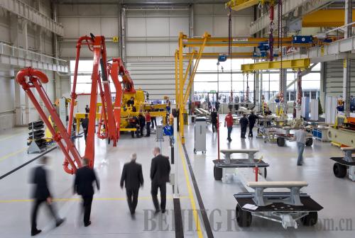 GOING OUT: Employees of Changsha-based Sany Heavy Industry Co. Ltd. walk through the company's production base in Bedburg, Germany on June 20, 2011. Sany is one of the 50 largest manufacturers of construction machinery in the world (CFP)