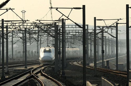 A bullet train makes its way to Nanjing South Station (CFP) |