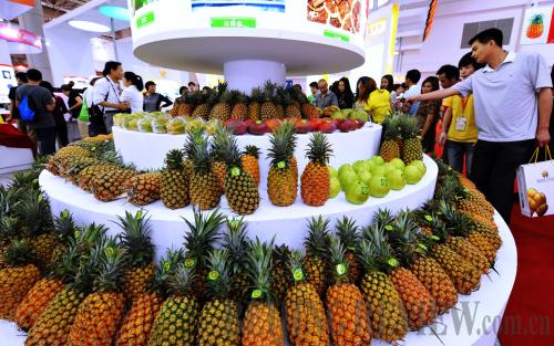 JUICY FRUITS: Citizens observe fruits from Taiwan in the Early Harvest Program exhibition at the 2011 (ZHANG GUOJUN)