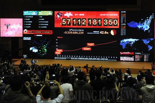 Since 2009, the day of November 11, selected as China's premier online bargain shopping day and named Singles Day because of all the number 1's in the date's permutation, has begun to catch people's eyes with its many sales. According to statistics from Alibaba, its business-to-customer (B2C) website Tmall.com registered a transaction value of 57.1 billion yuan ($9.32 billion) on this year's Singles Day, an increase of 21 billion yuan ($3.43 billion) from the previous year.