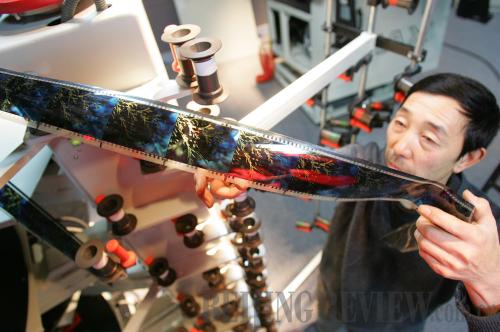 NEW ENJOYMENT: A staff of China National Film Museum loads films on to a 4D projector (YANG SUYAO) |