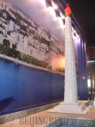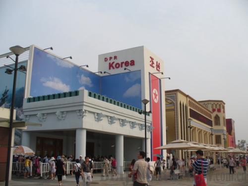 North Korea makes its World Expo debut in Shanghai. The North Korea Pavilion has a conspicuous lack of content – a few video screens and a monument to juche, Kim Il Sung's philosophical system of self-reliance. More interesting is the gift shop, which features a selection of works by current leader Kim Jong Il.