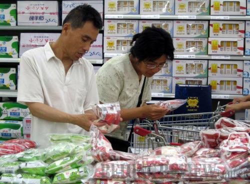 SAFETY FIRST: Shoppers scrutinize quality guarantee information on yogurt packages in a supermarket in Beijing (XINHUA) |