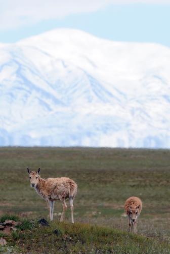 HOME OF WILDLIFE: Two Tibetan antelopes walk on a pasture in the Hoh Xil National Nature Reserve on the Qinghai-Tibet Plateau (XINHUA) |