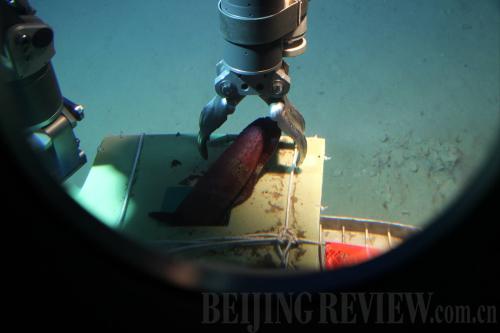 MAGIC HAND: Jiaolong successfully captures a sample of an abyssopelagic organism during the test in the South China Sea in July 2010 (XINHUA) |