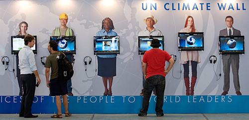 People look at the UN Climate Wall featured at the ongoing United Nations Framework Convention on Climate Change in the Mexican seaside resort of Cancun on November 30 (XINHUA)