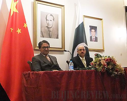 MEETING THE PRESS: Jalil Abbas Jillani (left), visiting Pakistani Foreign Secretary, and Masood Khan, Ambassador of Pakistan to China, are answering questions from Chinese media at the Embassy of Pakistan in Beijing on November 1 (PAN SHUANGQIN) |