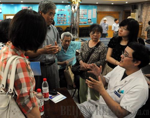 REASSURANCE: A doctor at Beijing Xuanwu Hospital answers questions about bladder cancer during an activity to promote public awareness on June 15 (TANG ZHAOMING) |