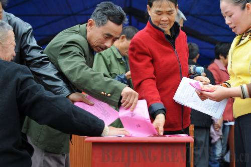 HAVING THEIR SAY: Villagers in Hubei Province's Jitoushan Village vote for local villagers' committee in November 2008 (CAO LIDA) |