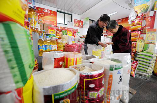 SAFETY FIRST: A buyer carefully chooses rice from a market in Hangzhou, east China's Zhejiang Province, on October 21, 2010 (HAN CHUANHAO) |