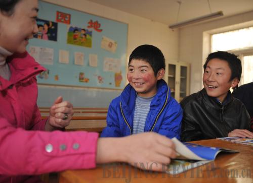 BEING CARED FOR: A teacher instructs minor residents in a relief station for vagrants and beggers in Lanzhou, Gansu Province, on January 4, 2010 (NIE JIANJIANG) |