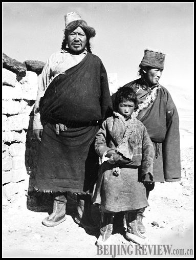 Chaboin (left) of the Lomaransho tribe of Nagqu Zong and his family. Chaboin was the headman of the tribe who followed the orders of the Zongboin magistrate and managed the administrative affairs in the tribe. For example, he helped the Zongboin magistrate register population, check the amount of livestock, dispatch corvée labor squads and collect taxes, ensure public security, mediate civil disputes in the tribe and preside over tribal meetings. |