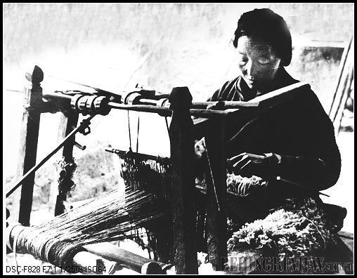 Nangsan in Guntang Shika Manor weaving Tibetan quilts for the estate owner (1957)