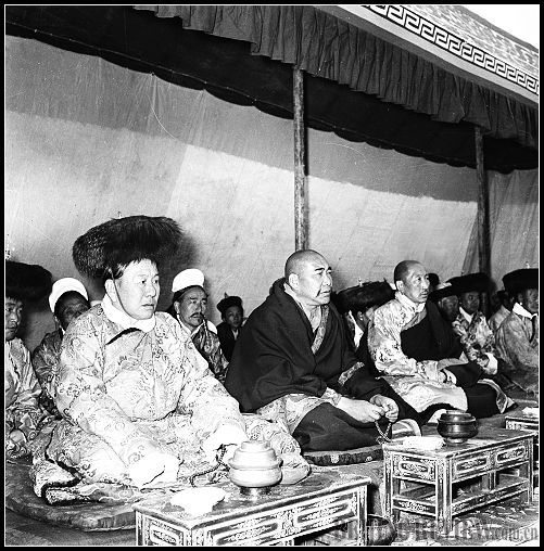 The three people in the front row in the picture are monk and lay officials in the Gashag government. Right to left: Siangar Chomei Dorje (Shasoi), Lobsang Zhaxi , Liushia Tubdain Tarpa