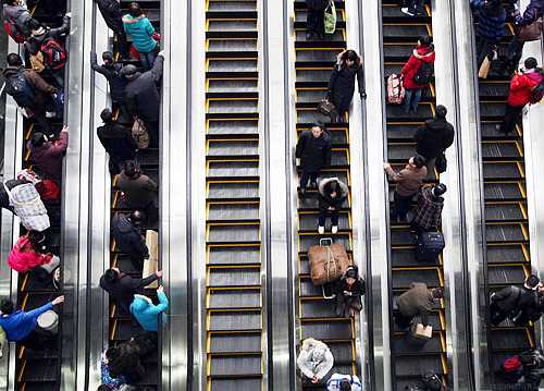 A view of the escalators at Beijing West Railway Station on January 20 (RAO QIANG)