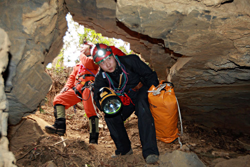 ACTION: Rescue team members enter a cave to start their mission (CUI MENG) |
