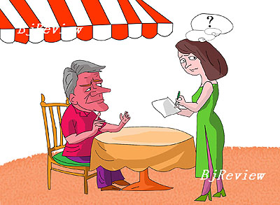 "Tull" reads the sticker on the restaurant door. It's a promising start. At our table, the friendly waitress presents us with a Chinese and English menu offering a wide selection of hot drinks, including the intriguing "Ovaltion." Turning eagerly to the food pages, I breathe a sigh of relief as gems such as "Select Wing of Typhoon Shelter" and "Sleek Chicken" leap out at me. My fears of government interference in my dining pleasure have been entirely unfounded. Despite officials' efforts, there are still plenty of Beijing restaurants with wonderfully Chinglish-riddled menus.