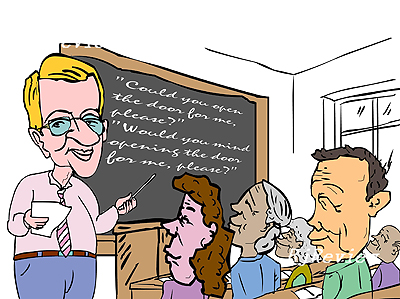 Around the corner from the People's Daily on a leafy strip of the city's business district, Chaoyang Library has always been a weekend haven for senior citizens wanting to use their time productively: singing classes, art classes and financial advice shops. But they've taken it up a huge notch with Olympic English. A 12-month course hammered out, typed and printed by volunteers, which introduces locals to the kind of dialogue they'll be expected to replicate with lost Olympic-going foreigners. Phrases are written in a chatty, informal style to encourage chat between students and the Olympic visitors they'll speak to. "There are plenty of restaurants near your hotel, which kind of food would you like?" There are concessions to modernity too: "You can find wireless Internet connections in most of Beijing's downtown hotels and cafes."