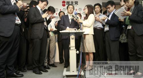 READY FOR POWER: Yukio Hatoyama, leader of the Democratic Party of Japan (DPJ), speaks to the media in Tokyo on August 31, after DPJ won a landslide victory in Japan's lower house elections (REN ZHENGLAI) |
