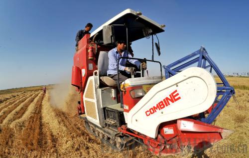 ABUNDANT HARVEST: Farmers in Tongyi Village of Ningxia Hui Autonomous Region harvest rice using modern machinery. The overall harvest for 2009 is expected to be one of the largest in Chinese history (WANG PENG) |