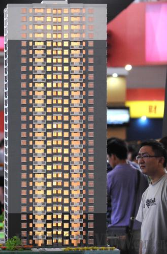 DREAM HOME: A prospective home buyer looks at a model of a property project at the property trade fair in Kunming (LIN YIGUANG) |