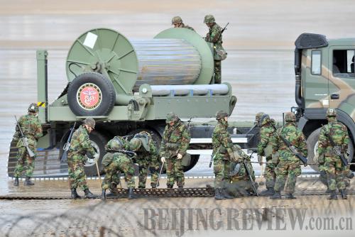 South Korean soldiers prepare for a landing exercise on a beach southwest of Seoul on November 28, as part of a U.S.-South Korea joint military drill.