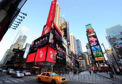 PROMOTION IN THE APPLE: A video promoting China is shown on screens (left) in New York's Times Square on January 17 (SHEN HONG) |