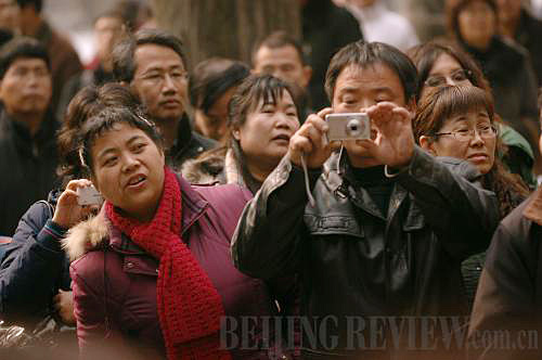 ANXIOUS PARENTS: Parents wait for their children who sit in the joint recruitment exam of the university consortium represented by Peking University on February 20 (ZHAO WANWEI) |