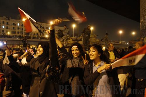 END OF AN ERA: Egyptians celebrate in Cairo on February 11 after President Hosni Mubarak stepped down (XINHUA/AFP) |