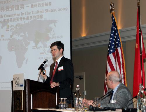 INVEST IN AMERICA: Christopher Clement, an official with the U.S. Department of Commerce, gives a presentation during a Seattle investment forum aimed at promoting Chinese direct investment in U.S. cities on April 20, 2011 (WANG CHENGYUN) |